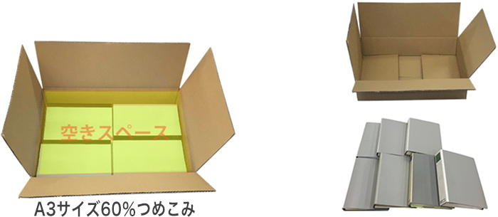 K-BOXは1箱単位が通常のスキャニングよりも大幅にお得なことが分かります。ですが、原稿の量が少ないと K-BOXを使わない方がコストを抑えることが出来ます。例えばA3サイズのK-BOXに60%の原稿しか入っていない と、K-BOXでご依頼いただくよりも通常にスキャニングした方がお得になります。「たまっている書類はあるけど スカスカになってしまうかも?」とお困りの場合は、別途ご相談ください。
